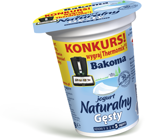 Kup jogurt Naturalny gęsty w dowolnej pojemności marki Bakoma i zachowaj paragon.